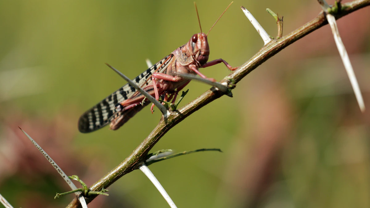 حشرة الجراد على غصن إحدى الأشجار في بلدة بإقليم أمهرة الإثيوبي- 15 أكتوبر 2020 - REUTERS