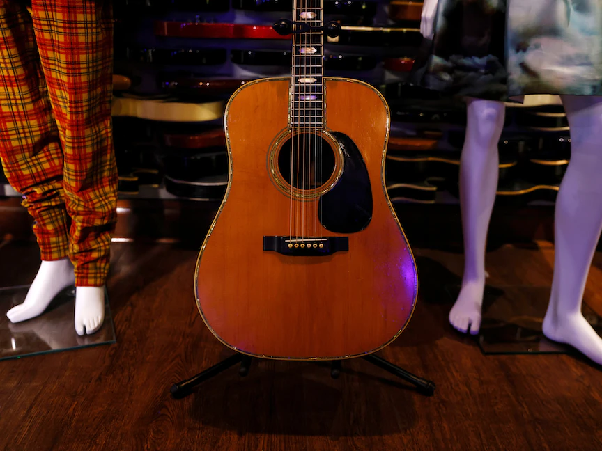 جيتار كان يملكه ويعزف عليه إريك كلابتون في مزاد جوليان في هارد روك كافيه بمدينة نيويورك بالولايات المتحدة - 15 نوفمبر 2021. - REUTERS