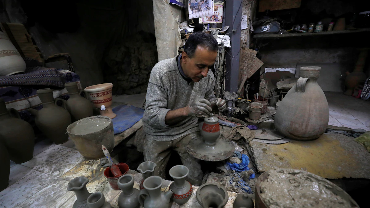 يعمل الفلسطيني جمال الفاخوري الذي يقطن في بلدة جبع وسط الضفة الغربية منذ 40 عاماً، في صناعة الفخار، محولاً قطع الصلصال إلى تحف فنية متعددة الأحجام والأشكال.