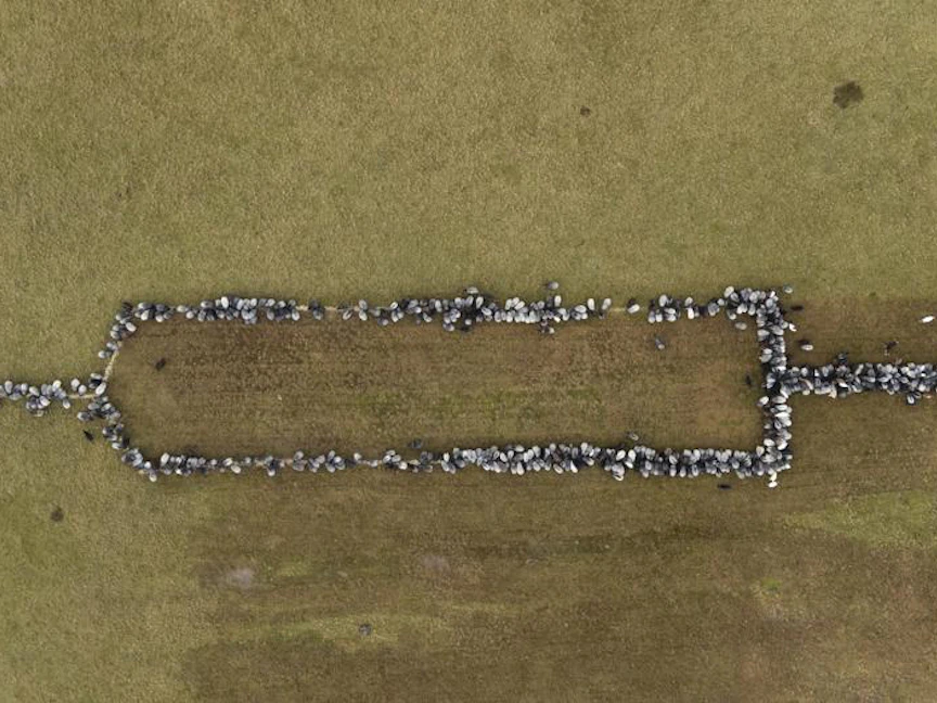 وأشارت إلى أن تلك الحيلة استخدمت لترتيب الحيوانات على شكل حقنة بطول 100 متر (330 قدماً) تقريباً في حقل في شنفردينجن جنوب هامبورج.