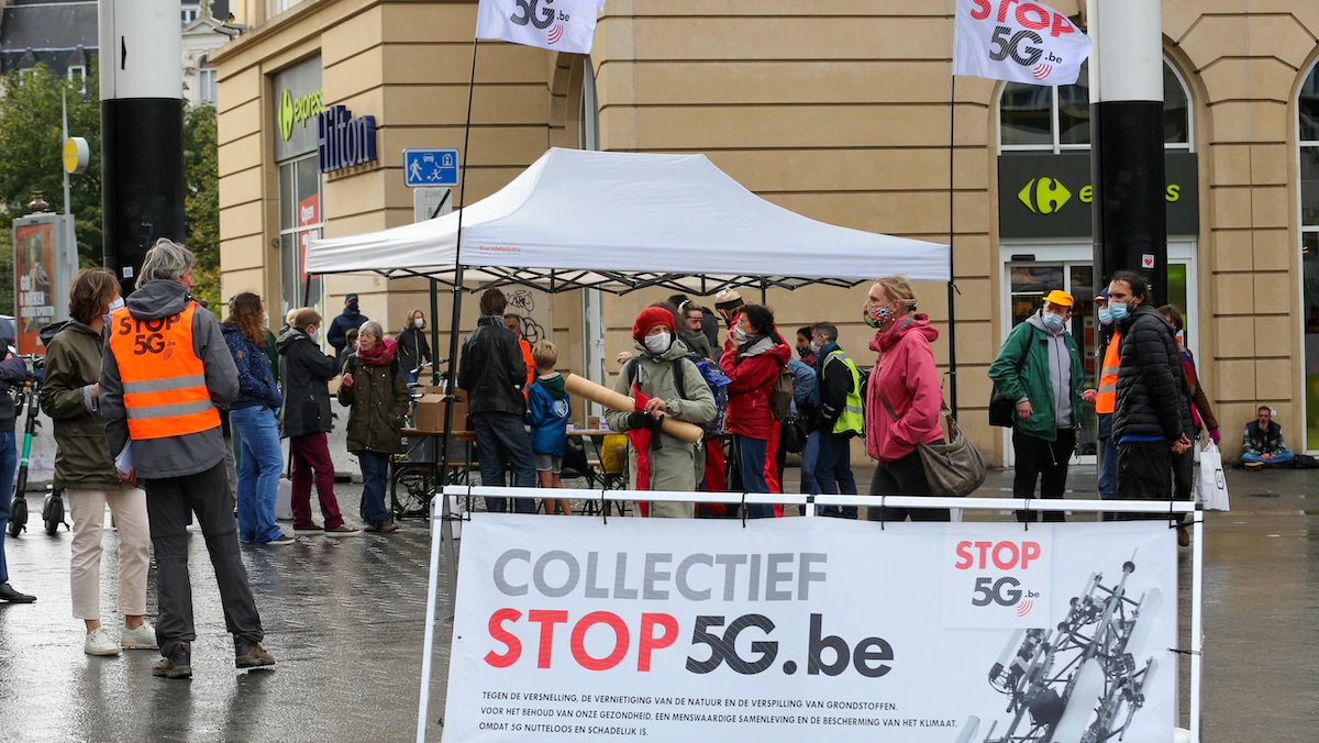 مظاهرة ضد نشر شبكة الجيل الخامس 5G اللاسلكية في بروكسل، بلجيكا. 26 سبتمبر 2020 - AFP