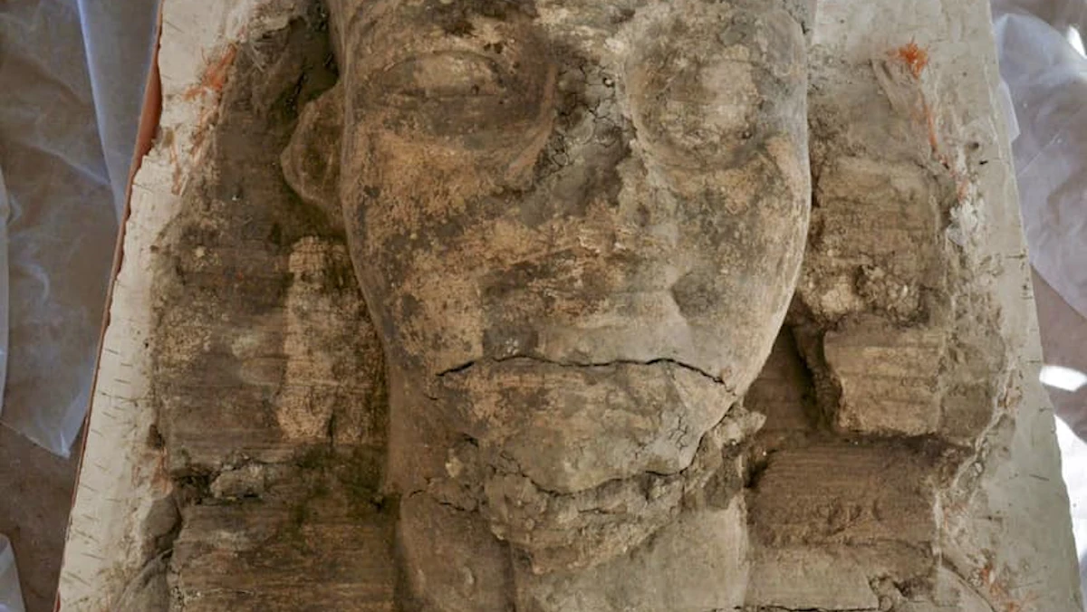 وأفاد بيان حكومي، بأنه من بين القطع المكتشفة، أجزاء من تمثالين ضخمين للملك أمنحتب الثالث من الحجر الجيري على هيئة أبو الهول، مرتدياً غطاء الرأس واللحية الملكية، وقلادة عريضة حول العنق، والذي تم العثور عليهما في المنطقة الخلفية لبوابة الصرح الثالث.