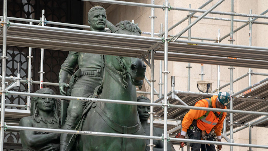 أزال عمال أميركيون، الأربعاء، تمثالاً شاهقاً للرئيس الأميركي الراحل ثيودور روزفلت من خارج المتحف الأميركي للتاريخ الطبيعي في مدينة نيويورك.