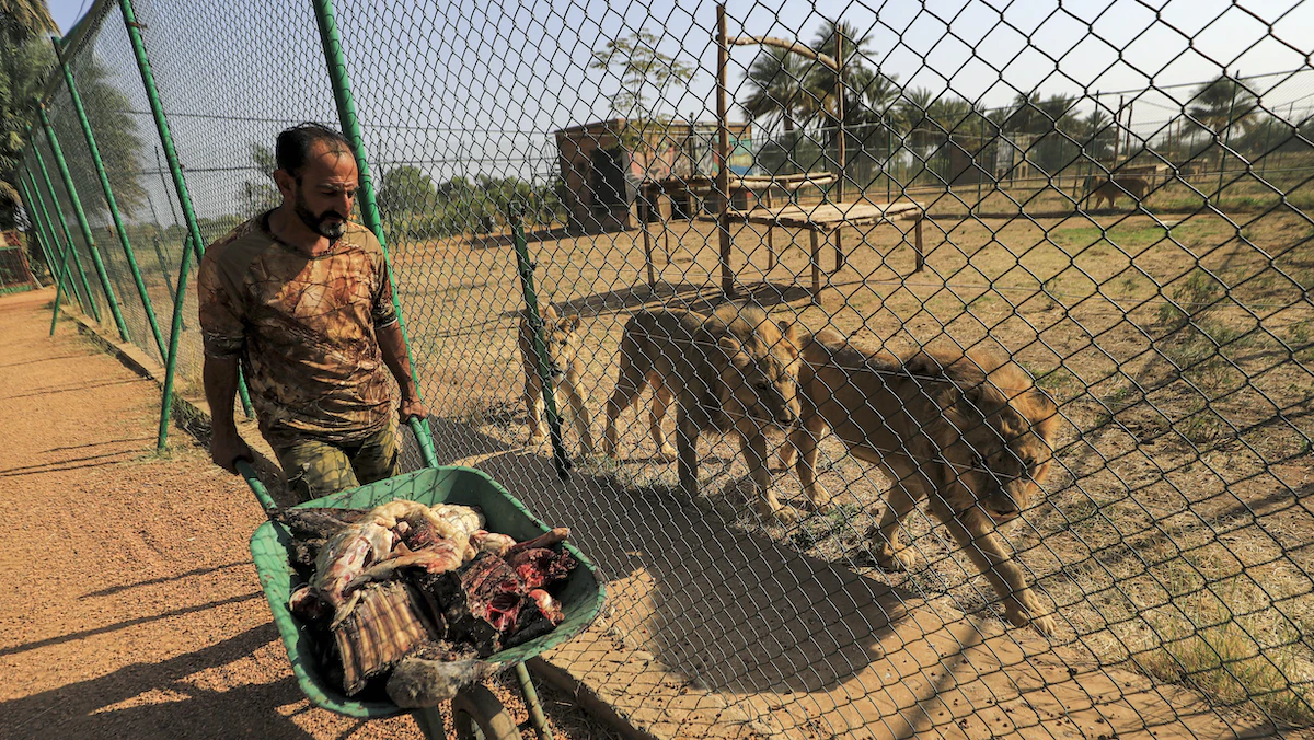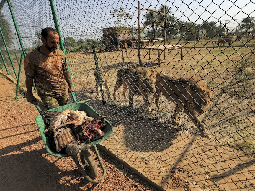 وفي كل يوم، يقدم عثمان صالح ومعتز كمال و20 متطوعاً آخرون ما بين 5 و10 كيلوغرامات من اللحم لكل أسد، وعلى حفنة من الضباع لديها مساحة خاصة بها في الهواء الطلق.