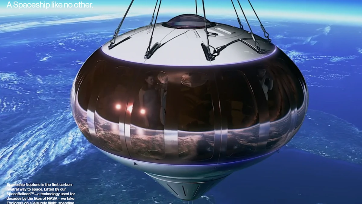 تصميم دعائي للكبسولة "نبتون" التابعة لشركة "سبايس بيرسبيكتيف" للسياحة الفضائية كما يظهر على الموقع الالكتروني للشركة. - spaceperspective.com