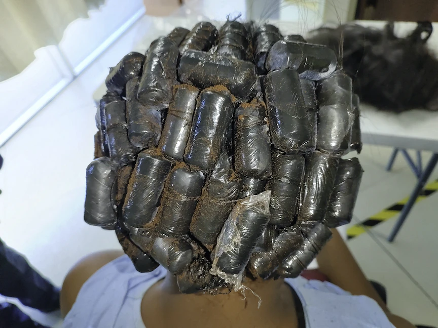 وأشارت رودريجيز إلى أن المرأة التي لم تذكر أي تفاصيل أخرى عنها، حملت تحت شعرها المستعار "68 عبوة أسطوانية سوداء تحتوي على مسحوق أبيض".