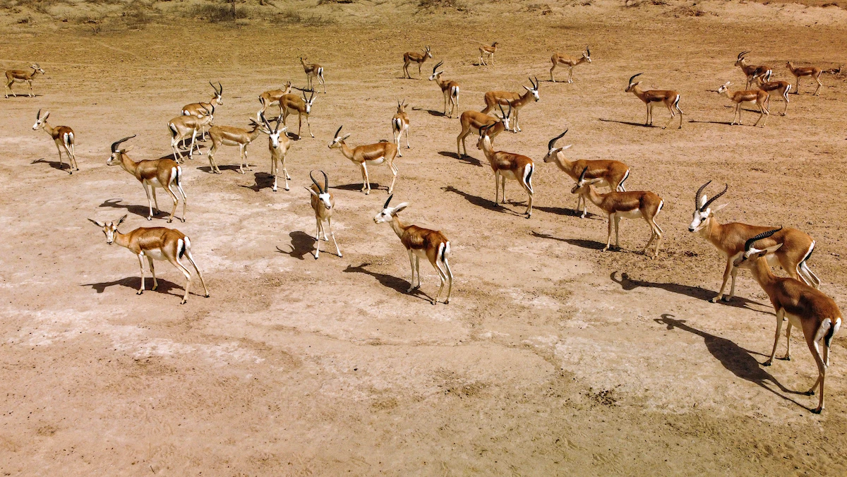 تبحث غزلان الريم المتبقية في محمية ساوة جنوب العراق عن شيء لتأكله بعد هلاك لحق بها، وأدى إلى انخفاض أعدادها من 148 إلى 87 رأساً خلال شهر واحد فقط إثر الجفاف، وانقطاع موارد الغذاء، وغياب الدعم الحكومي.