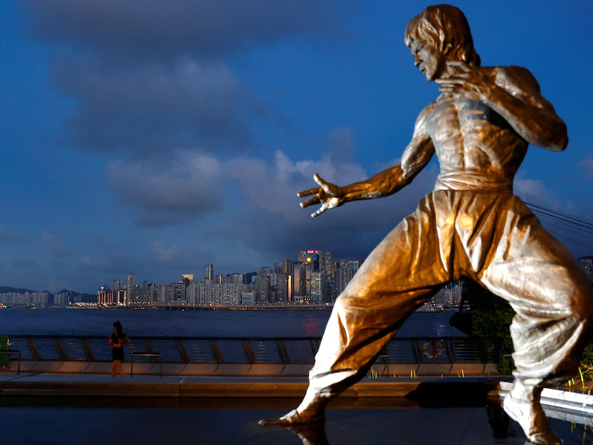 تمثال لأسطورة فن الدفاع عن النفس بروس لي، هونج كونج – 27 أغسطس 2022 - REUTERS