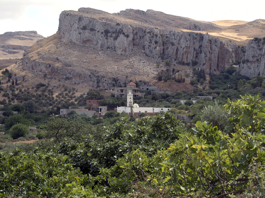 مسجد بين أشجار التين في بلدة دجبة التونسية، جنوب غربي العاصمة تونس - 19 أغسطس 2022 - AFP