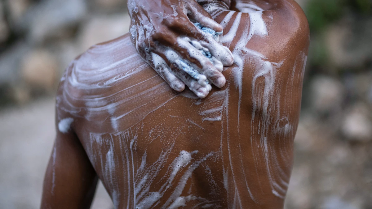 ويتعين غسل الجلد في حال "غمرته عوامل عدوانية" مثل التلوث أو العرق، لكن كقاعدة عامة، "يكفي غسل المناطق التي تحتوي على العرق الدهني، والتي تكون أكثر عرضة للمستعمرات البكتيرية، مثل الإبطين والفجوات بين أصابع القدمين".