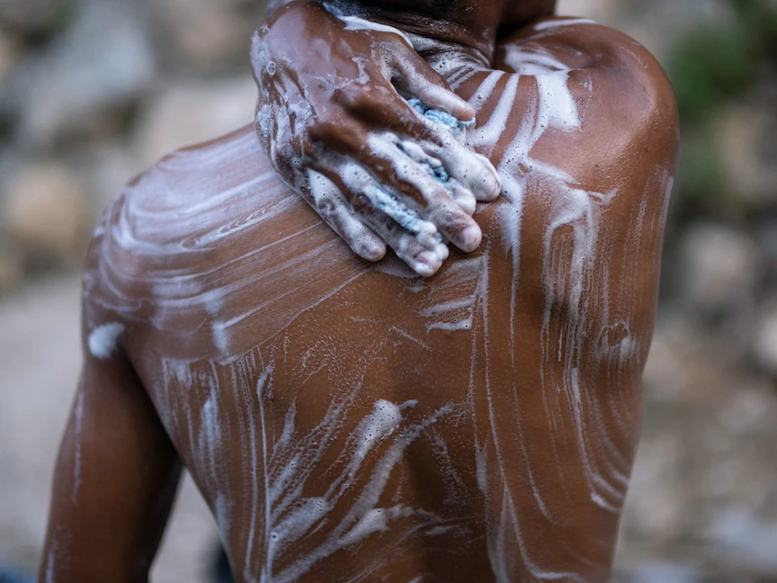 ويوصي أطباء الجلد بالتركيز على الأجزاء التي تتواجد فيها الميكروبات والعرق، باستخدام الحد الأدنى من المنظفات أو عوامل الرغوة التي تهاجم الجلد.