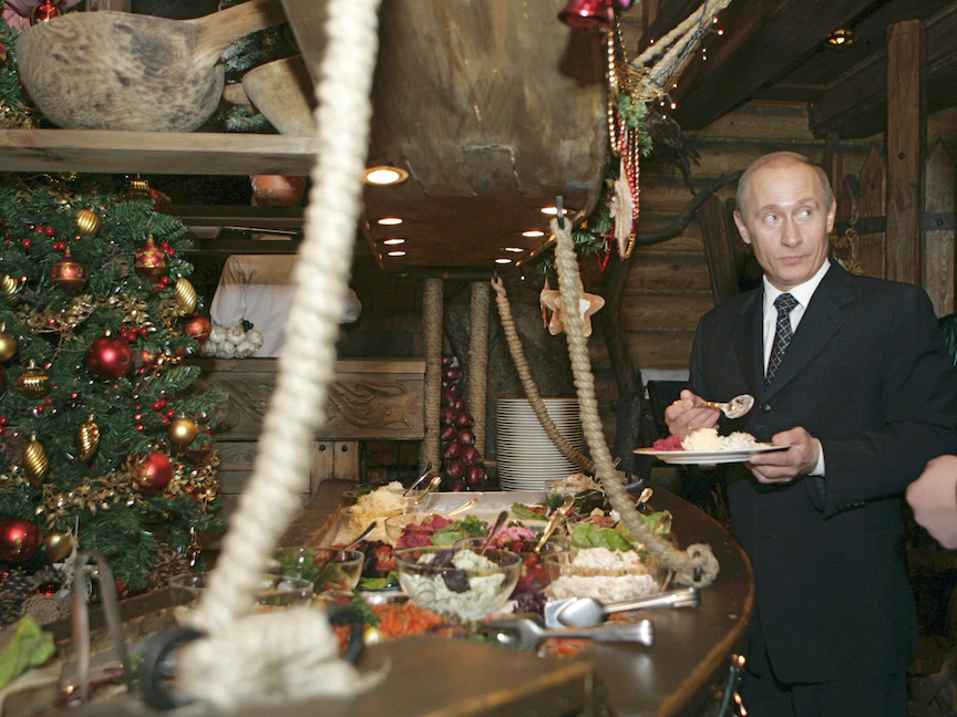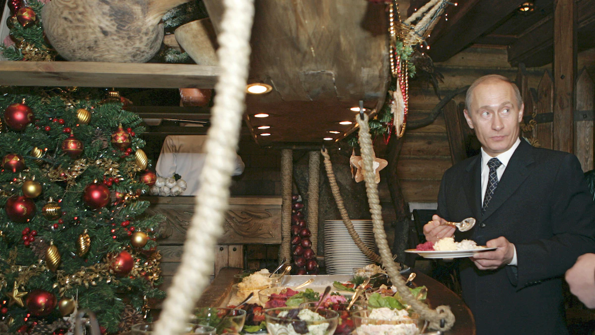 لم تكن موائد رأس السنة في الدول التي كانت جزءاً من الاتحاد السوفياتي تخلو من نوعين من السلطات الروسية، هما "شوبا" التي يدخل سمك الرنكة والشمندر ضمن مكوّناتها الرئيسية، و"أوليفييه" المؤلّفة من البطاطا، لكنّ مطاعم كثيرة في كييف أصبحت تمتنع عن تقديم هذين الطبقين بسبب الغزو الروسي لأوكرانيا.