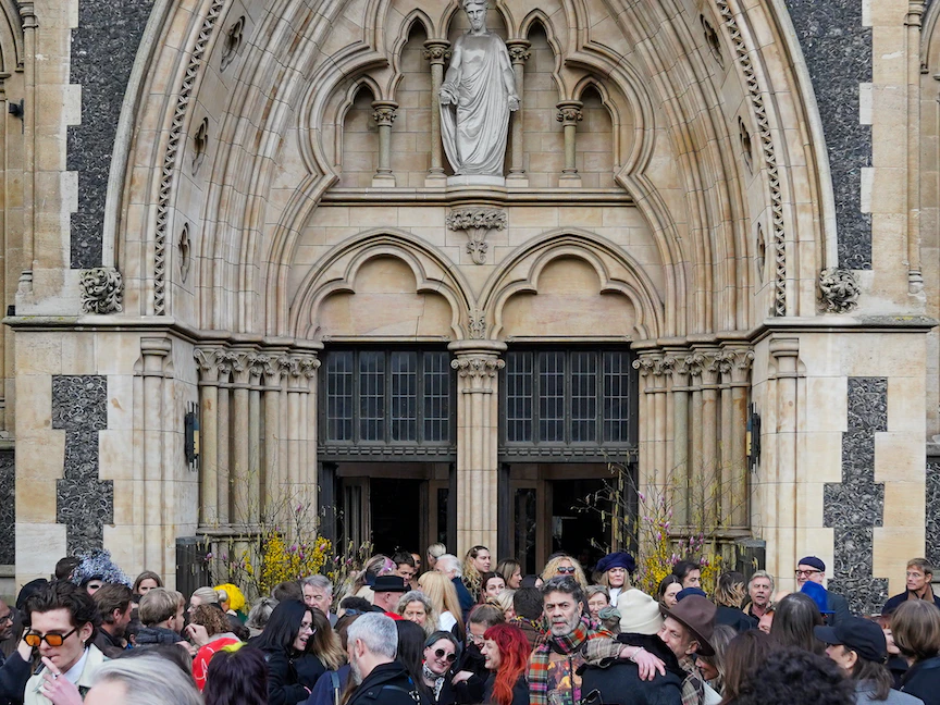 واجتمع هؤلاء المشاهير في كاتدرائية ساوثوارك اللندنية، ومن بينهم عارضة الأزياء البريطانية كيت موس والمصممة فيكتوريا بيكهام ومغني الراب ستورمزي ورئيسة تحرير النسخة الأميركية من مجلة "فوغ" المديرة الفنية لـ"كوندي ناست" آنا وينتور، والممثلة هيلينا بونهام كارتر والفنانة تريسي أمين، وهي صديقة قديمة لويستوود.