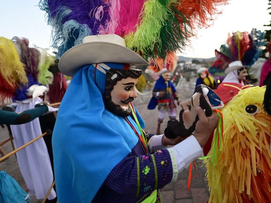 وانطلق المهرجان نهاية فبراير في قرى إحدى أصغر الولايات المكسيكية وعاصمتها، والتي تبعد 120 كيلومتراً شرق مكسيكو، حيث انكب المشاركون على الرقص واستعراض أزيائهم، مرتدين أقنعة لوجوه تظهر خصائص "القوقازيين"، أي بشرة فاتحة وعيون زرقاء ولحى مُعتنى بها.