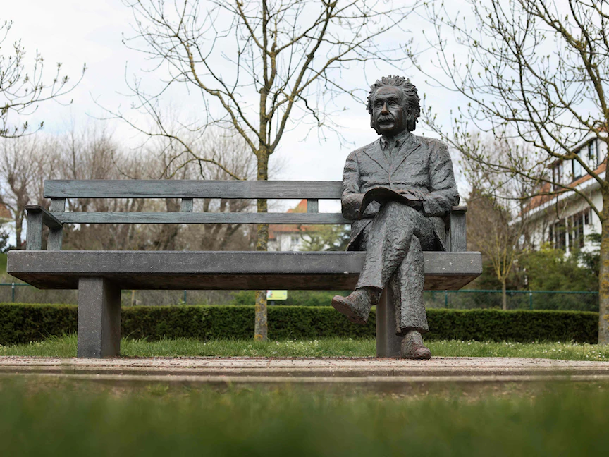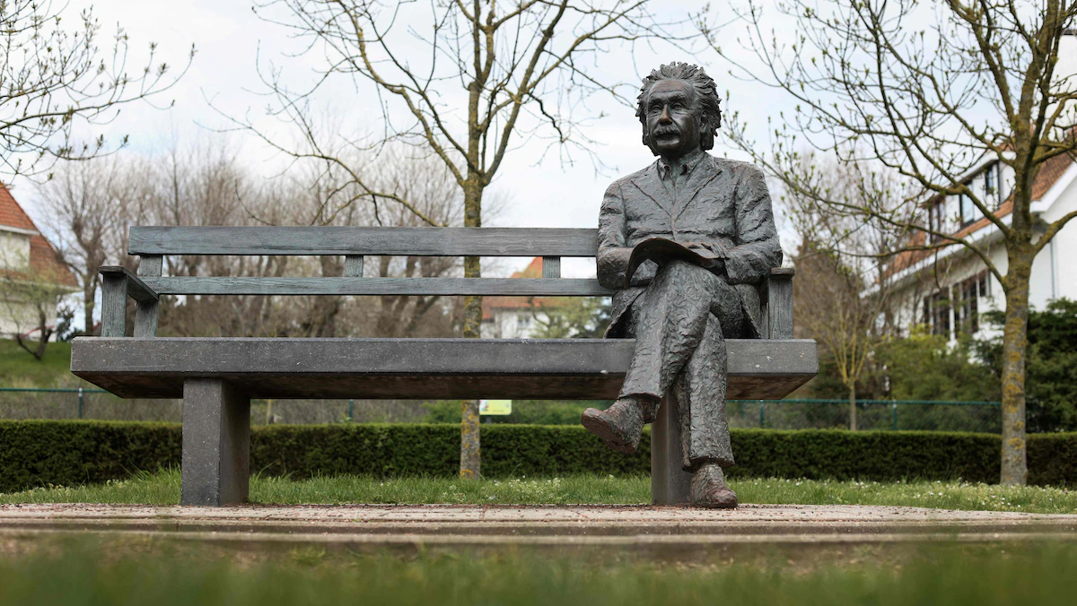 يجذب تمثال برونزي لعالم الفيزياء ألبرت أينشتاين جالساً على مقعد في حديقة عامة الكثير من السياح إلى مدينة لو كوك الواقعة على الساحل البلجيكي، حيث أقام قبل 90 عاماً.