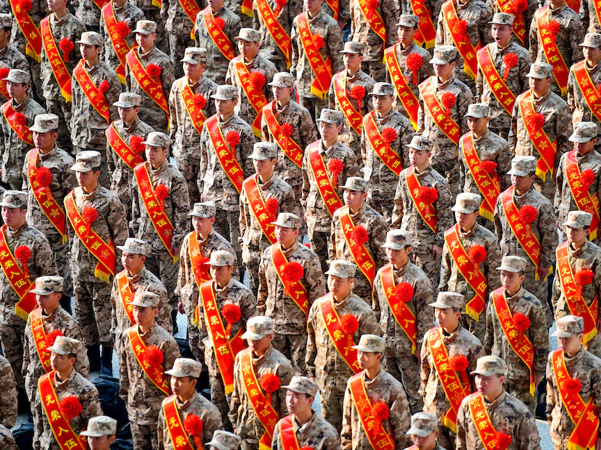 وفي الدعابة، روى لي واقعة عن كلبين ضالين تبناهما ورآهما يطاردان سنجاباً وقال إن ذلك ذكّره بعبارة "أحسنوا العمل، وكونوا قادرين على القتال وكسب المعارك". وهو شعار استخدمه الرئيس الصيني شي جين بينج في عام 2013 لمدح أخلاقيات العمل بالجيش.