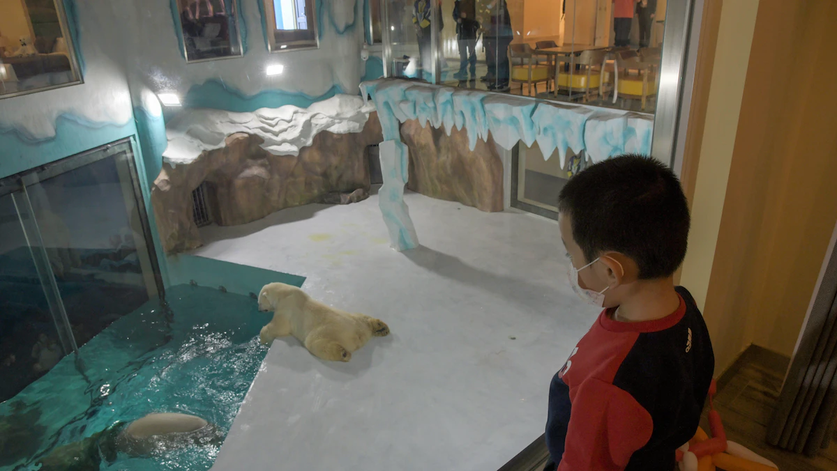 وأظهرت صور ومقاطع مصورة نشرتها وسائل إعلام رسمية في الصين أناساً يشاهدون من وراء زجاج دبين قطبيين وسط جليد صناعي وبرك مياه صغيرة.