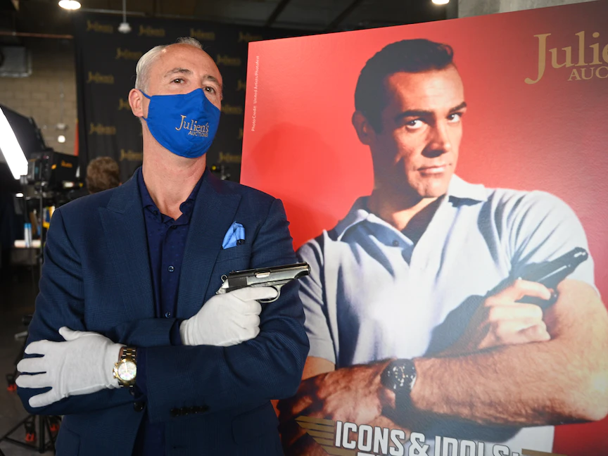 بيع المسدس الشهير الذي حمله شون كونري في أول أفلام جيمس بوند في مزاد بسعر 256 ألف دولار، وفق ما أفادت دار المزادات "جوليينز أوكشنز" في بيفرلي هيلز بولاية كاليفورنيا.