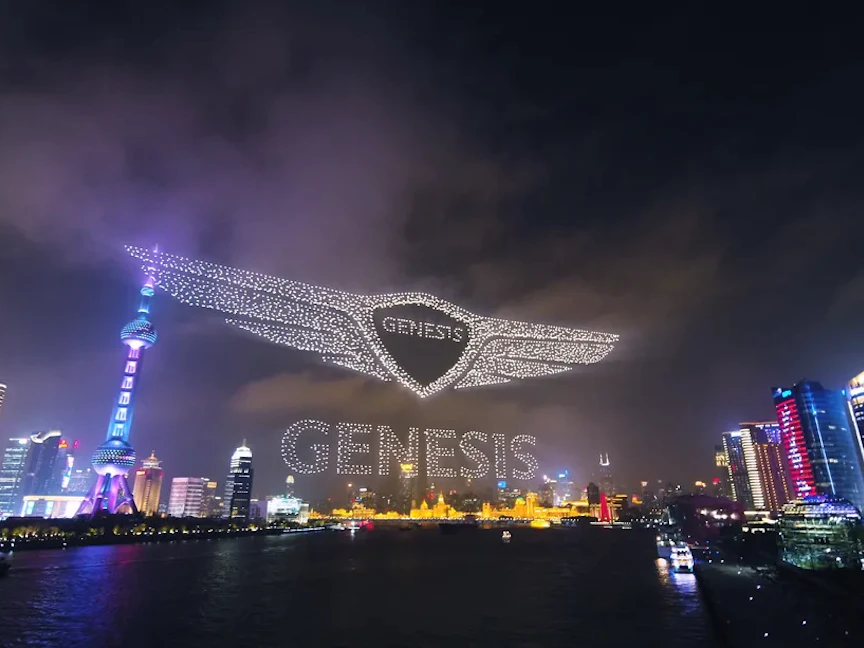 دخلت علامة Genesis للسيارات الفاخرة، المملوكة لهيونداي، موسوعة غينيس للأرقام القياسية، وذلك بعد اعتمادها على 3281 طائرة مُسيرة خلال عرض ضوئي مبهر بمناسبة دخولها إلى السوق الصيني.