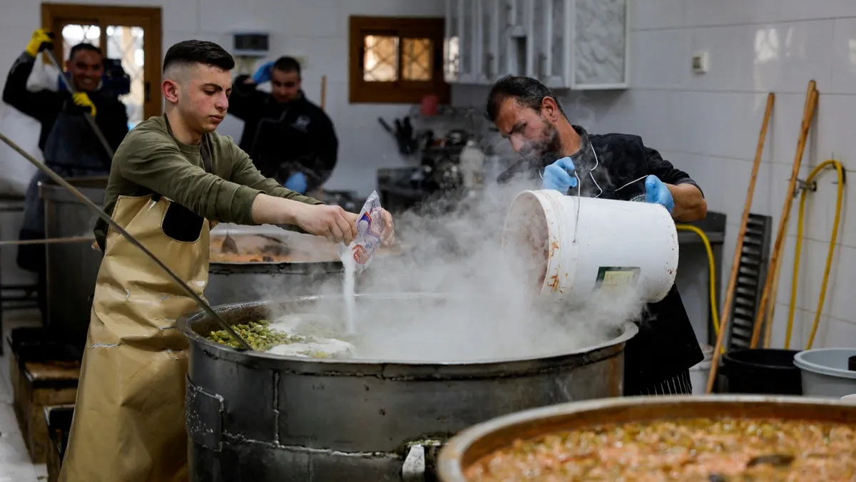 ويقول العاملون والمتطوعون في جمعية خيرية بمدينة الخليل بالضفة الغربية، وهم يُقلّبون الحساء في أوعية كبيرة داخل مطبخ واسع، إنهم تلقوا أعداداً هائلة من طلبات الحصول على وجبات الإفطار في أول أسبوعين من رمضان.