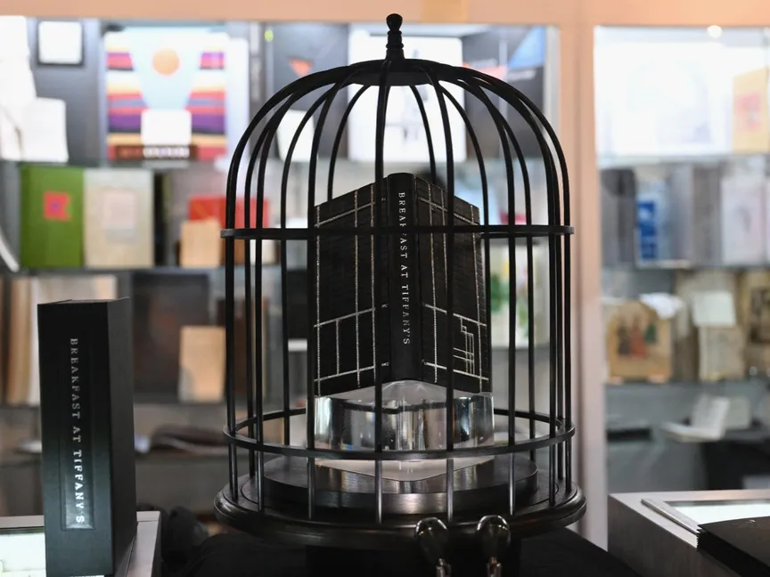 نسخة مرصعة بالألماس من كتاب Breakfast at Tiffany's خلال المعرض الدولي للكتب النادرة والقديمة في نيويورك. 4 أبريل 2024 - AFP