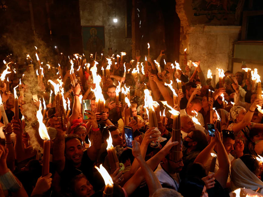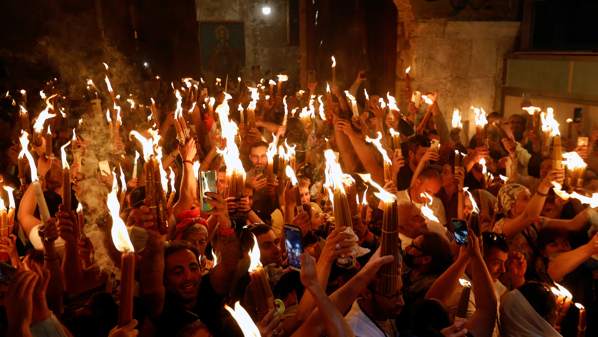 وجرت العادة على أن يجذب الاحتفال عشرات الآلاف من الأشخاص إلى سرداب رمادي اللون في كنيسة القيامة، يُعتقد أنه يضم القبر الذي دفن فيه المسيح قبل ألفي عام حسب الاعتقاد المسيحي.