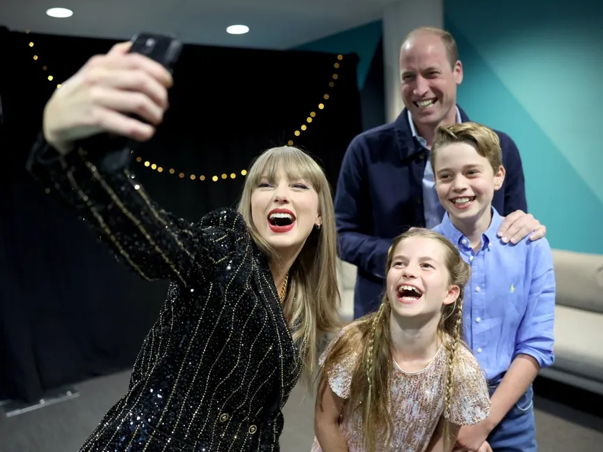 ونشر وليام صورة سيلفي ظهر فيها ولداه الأمير جورج والأميرة شارلوت، خلف كواليس الحفلة التي أقيمت في ملعب ويمبلي، الجمعة، ضمن الجولة العالمية لتايلور سويفت "ذي إيراس تور".