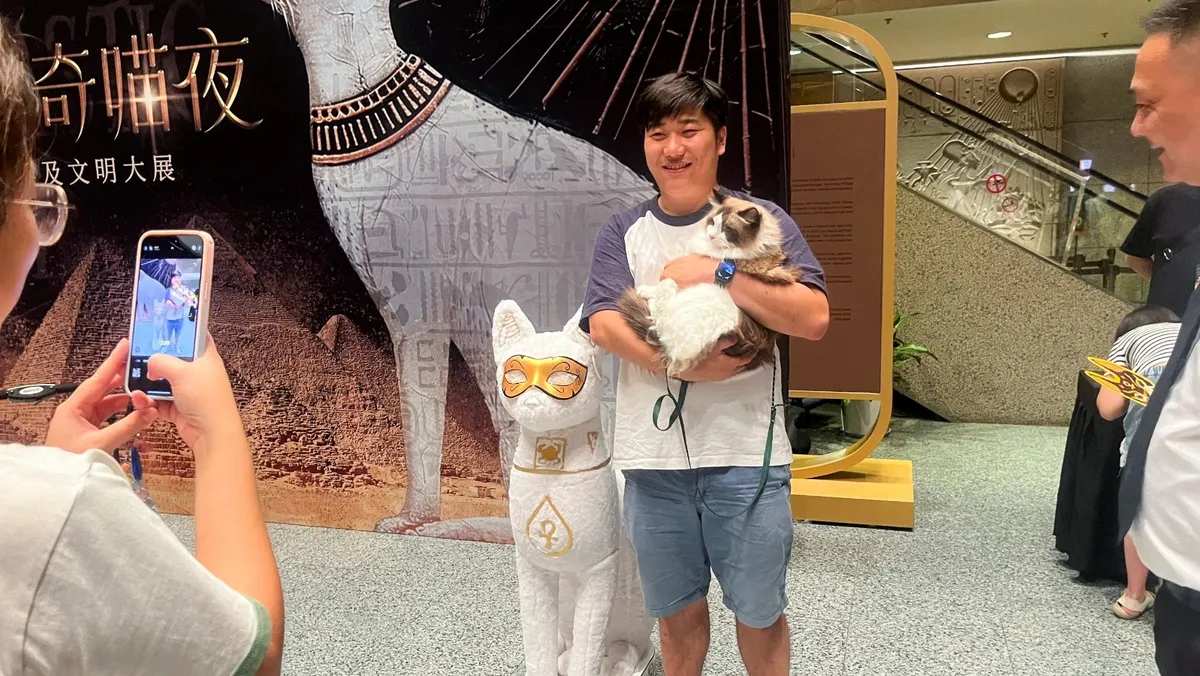 استقطب متحف شنغهاي في الصين، حشوداً كبيرة هذا الصيف، لحضور معرض للآثار المصرية القديمة، بما في ذلك تماثيل وصور للقطط، والذي يسمح في ليالي السبت لما يصل إلى 200 زائر باصطحاب قططهم معهم إلى المعرض.